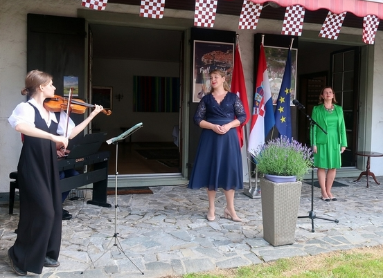 Na radost uzvanika, hrvatska sopranistica Nikolina Pinko otpjevala je hrvatsku, a potom i švicarsku himnu. Uz pratnju violinistice Petre Barabić i pijanista Marka Skorina čuli smo i Beethovenovu "Odu radosti" i ariju „Neka cijeli ovaj svijet“ iz poznatog hrvatskog mjuzikla „Jalta, Jalta“.