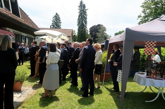 Sunčano vrijeme omogućilo je organizatorima i gostima lijepo druženje u vrtu rezidencie Veleposlanstva RH.