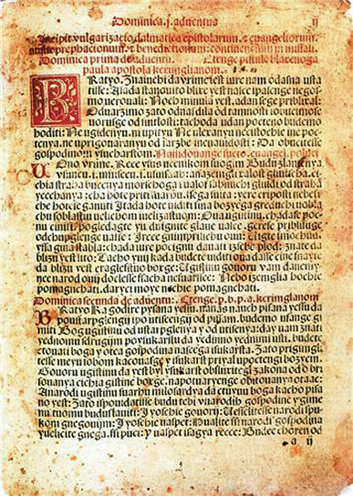 DubrovaÄki molitvenik, Venecija, 1512. // Lekcionar Bernardina Splićanina, 1495. // Prva stranica EvanÄ‘elja po Marku na glagoljici, Zografsko evanÄ‘elje, 10. st.