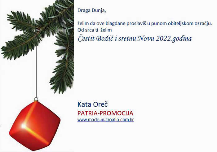 Blagoslovljen Božić i sretnu, zdravu Novu 2022 godinu,