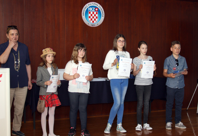 prvo nagrađeni Fran Filipović, Teo Hanžeković i Lana