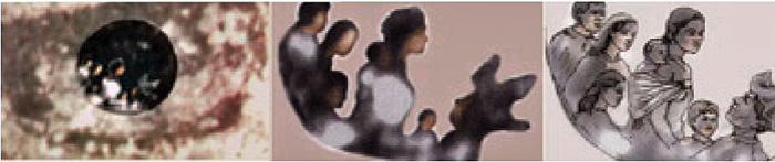 Rafael Torija Lavoignet i Javier Torroella Bueno, 1956. napravili su na slici uz pomoć oftalmoskopa, instrumenta za pregled unutarnjih dijelova oka - pišu Gorny i Rosikon, citirajući nalaz Torija Lavoigneta da se "u kutovima oba oka vide ljudska poprsja. Distorzija i pozicija te optičke slike posve su jednake onima koje stvara normalno ljudsko oko. Kada se svjetlo oftalmoskopa usmjeri na šarenicu ljudskog oka, u njemu se pojavi refleksija svjetlosti. Slijedimo li tu rekleksiju, uz odgovarajuću promjenu leća na oftalmoskopu možemo vidjeti sliku na dnu oka. Usmjerimo li svjetlo oftalmoskopa na šarenice očiju na ovoj slici Blažene Djevice Marije, javlja se ista takva refleksija. Kao posljedica te refleksije šarenica postaje ispunjena svjetlošću koja se širi prema van, što stvara efekt konkavnosti. (...) Takvu refleksiju nije moguće ostvariti na ravnoj površini.”