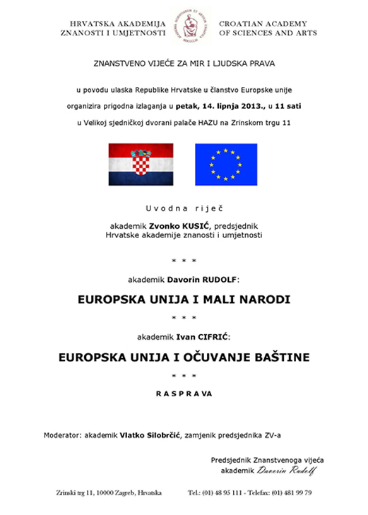 HAZU - PRIGODNO IZLAGANJE POVODOM ULASKA HRVATSKE U EU