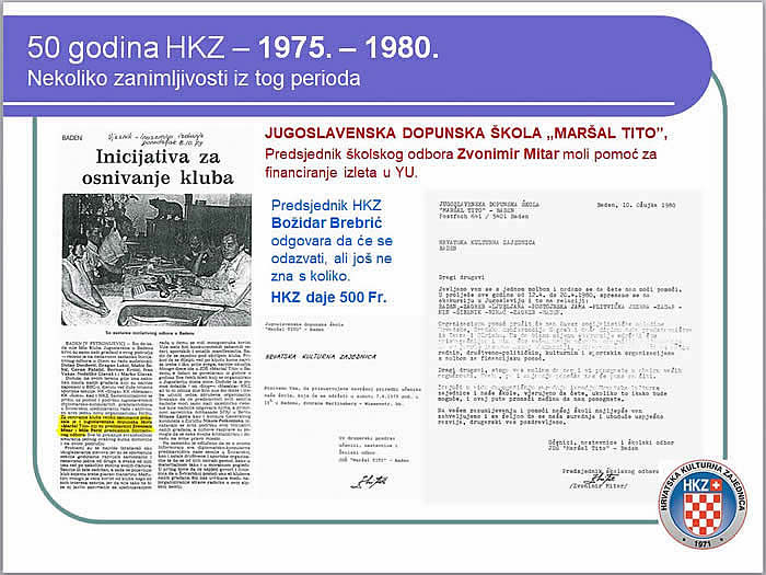 Doduše, na ovom terenu gdje ima nekoliko tisuća naših građana koji su najviše zaposleni u BBC-u, djeluju već duže vrijeme sportske sekcije: NK-Sloga-, KK "Metalac", KK "Soko", kao i HKZ. Samoinicijativno se prišlo, uz pomoć i podršku jugoslavenskih diplomarsko-konzularnih predstavništava u Švicarskoj, ujedinjavanju rada i aktivnosti kroz jednu novu organizacijsku formu. Za osnivanje kluba veliko zanimanje pokazala je i jugoslavenska dopunska škola "Maršal Tito" čiji su predstavnici Zvonimir Mitar i Mile Perić predsjednik Inicijativnog odbora. Sve to pokazuje svrsishodnost stvaranja jednog ovakvog kutka domovine i na ovom području.