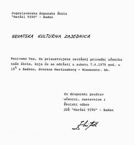 - Jugoslavenska dopunska škola Zvonimir Mitar za izlet u Jugoslaviju