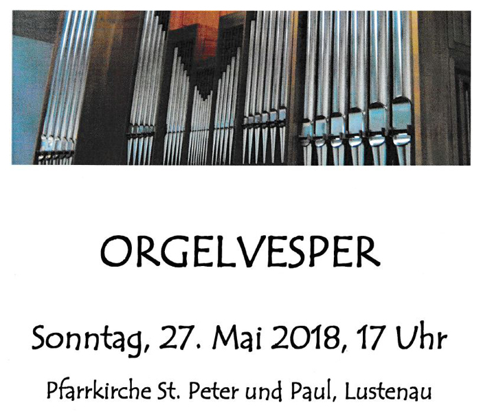 Sonntag, 27. Mai 2018, 17 Uhr, Pfarrkirche St. Peter und Paul, Lustenau