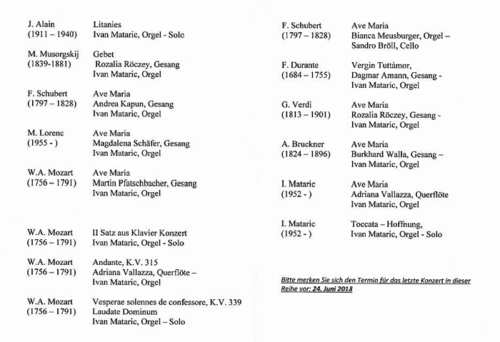 Bitte merken Sie sich den Termin für das nächste Konzert in dieser Reihe vor: 24. Juni 2018
