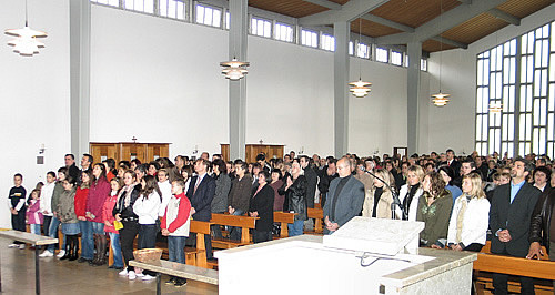 Nakon lijepog koncerta vratili smo se u Baden, večerali, podružili se i izmijenili dojmove sa nastupa. Ubrzo smo otišli na počinak jer nas je sutradan također čekao koncert na Hrvatskoj misi. Ujutro nakon doručka spremili smo stvari, oprostili se od hostela i krenuli put Basela. Misa i koncert održani su u crkvi Sv. Mihaela. Ispred crkve nas je veoma srdačno dočekao fra Petar Topić koji je služio misu. Crkva je bila popunjena do zadnjeg mjesta a oni strpljivi su stojećki odslušali misu i koncert. Bio je divan prizor i osjećaj pjevati za i pred toliko Hrvata! Fra Topić je misu odslužio jako zanimljivo i poučno ga je bilo slušati a pratnja na orguljama prof. Matarića zadivila je sve prisutne.