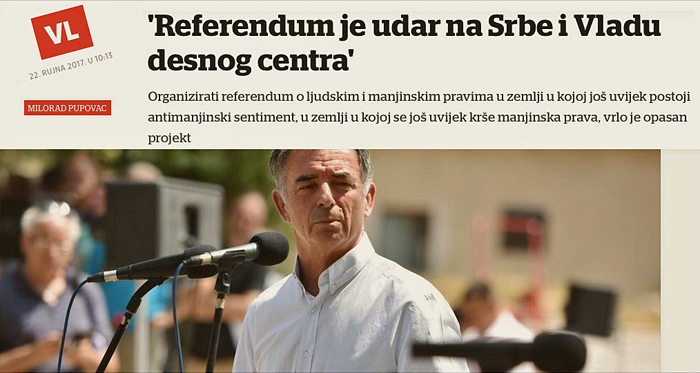 Željka Markić predlaže referendum za promjenu lošeg izbornog sustava u Lijepoj našoj. ”Novosti“ skaču kao oparene. 25. kolovoza kažu: “Hrvati, Željka Markić vas laže“. Pazite radi se o referendumu. Oblik neposrednog glasanja o nekom važnom pitanju. Što izborni zakon i te kako jest. U pravu je Tanja Bjelobrajdić kad piše: “Slažem se s “Novostima“ da ne šire mržnju prema Hrvatima, oni potiču mržnju prema Srbima“. Sjetite se naslovne stranice i revolucionarne slike: Thompson, njegova glava između srpa i čekića i krv kaplje iz vrata.