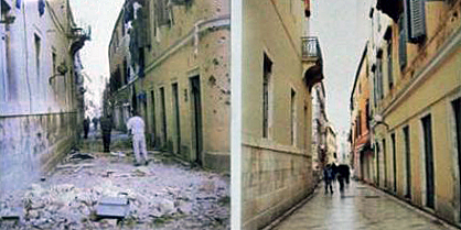 zidovima se nalaze fotografije Zadra tijekom rata, ali