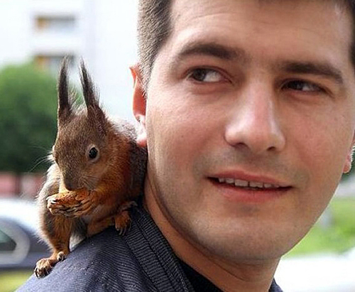 Vjeverica je uvijek uz njega i svuda ga prati.