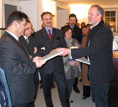 publika na otvorenju / razmjena darova: M. Andrlić, U. Hofmann, Špoljarić, D. Gaupp
