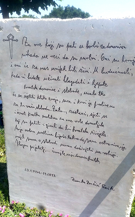 nadgrobni spomenik Zvonku Bušiću, izvijestili su